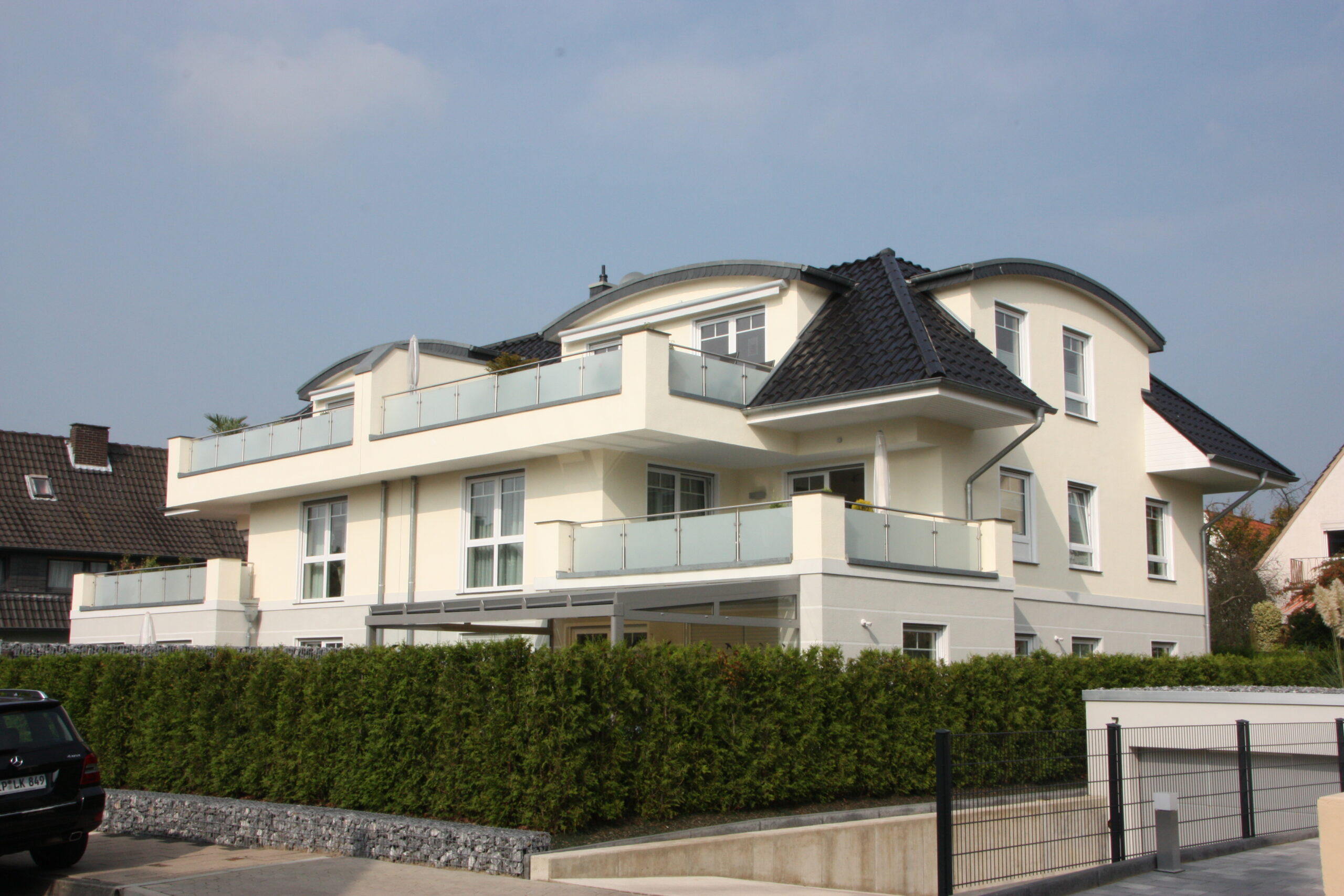 Eine außergewöhnliche Dachform sowie die großzügigen Balkone in jeder Wohnung sind die Besonderheiten dieses Mehrfamilienhauses. Zudem steht den Bewohnern eine Tiefgarage zur Verfügung.
